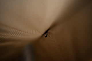 Alle sechs Abspannpunkte sind sorgfältig verstärkt, gesäumt und zusätzlich mit kleinen, leichten Metallringen versehen. Das erhöht die Langlebigkeit, ohne Gewicht oder Handling zu beeinträchtigen. Für ein stets straffes Setup ist jeder Abspannpunkt mit einem Shock Cord ausgestattet – so bleibt dein Tarp auch bei Wind und Regen perfekt gespannt.